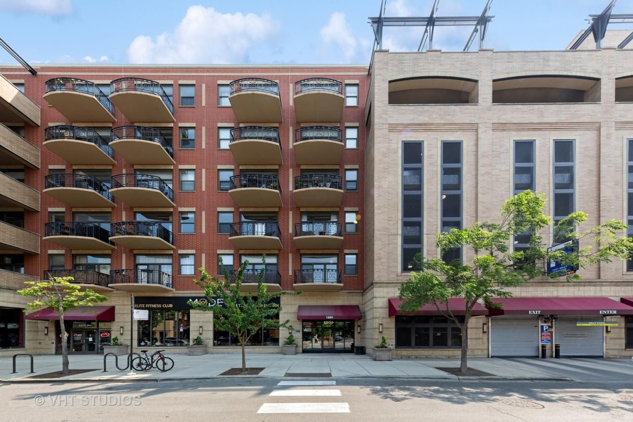 Bright and sunny south-facing 2 bed/1 bath condo overlooking magnificent courtyard at Block Y. This chic loft offers a gorgeous kitchen with granite counters, shaker cabinets, island and newer stainless appliances. A living space large enough for a separate dining room is highlighted with a design-driven tile wall and stunning chandelier. The large bath has a soaking tub, dual vanity and plenty of storage space. The spacious primary bedroom contains ample closet space and comfortably fits a king bed. The second bedroom is highlighted with a sliding barn door. A high efficiency furnace and AC unit was just installed. The unit is completed with a balcony that receives sunlight all day long and is a gardener's delight. INCLUDED prime garage parking! Block Y features a private, serene courtyard with reflection pond. Close walk to Skinner Park, tennis courts, restaurants, five star dining on Randolph St & Madison Row, Whole Foods, & Mariano's. Convenient to L, bus, and expressway. Welcome home to this gorgeous loft nestled in the heart of the West Loop!